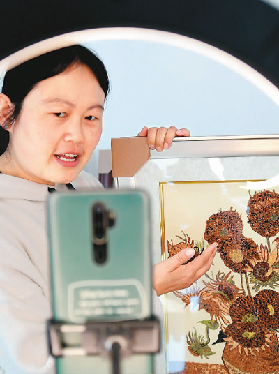 師獻(xiàn)巧的工作室不僅有線下教學(xué)和體驗(yàn),她還通過網(wǎng)絡(luò)直播形式推介糧食畫。 |