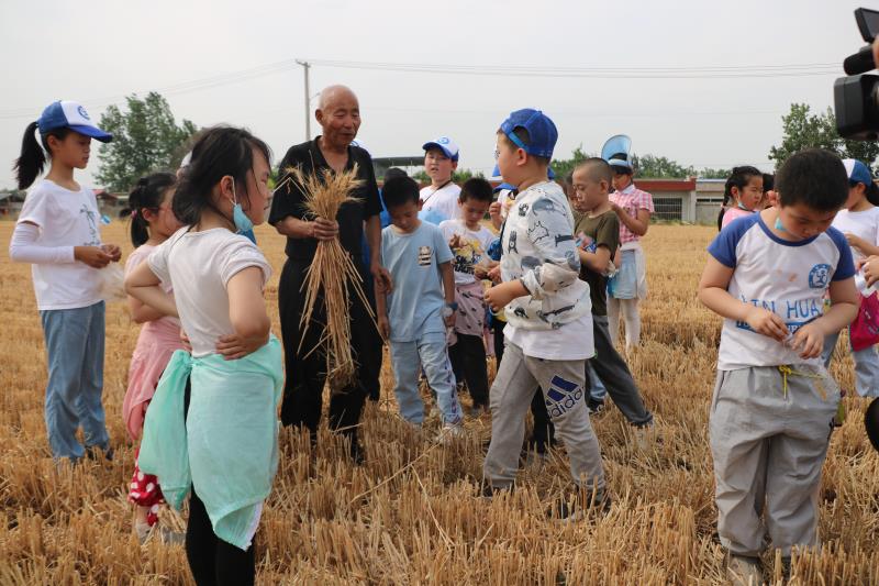 本次活動(dòng)的亮點(diǎn)是麥田拾麥穗,小記者們來(lái)到了廣闊的麥?zhǔn)仗锏?,麥田便有了歡聲笑語(yǔ)。大家開(kāi)始了撿麥穗競(jìng)賽,看誰(shuí)撿得麥穗大,看誰(shuí)拾得麥穗多。在撿拾麥穗的同時(shí),聽(tīng)取農(nóng)民爺爺講述小麥的耕種收割知識(shí),感悟每一粒糧食的來(lái)之不易,小農(nóng)夫體驗(yàn)收獲滿滿。