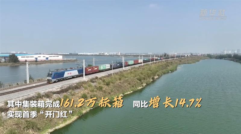西部陸海新通道鐵海聯(lián)運(yùn)班列載著香蕉干、食用植物油、椰汁等東盟特色產(chǎn)品,向川渝地區(qū)疾馳而去。
