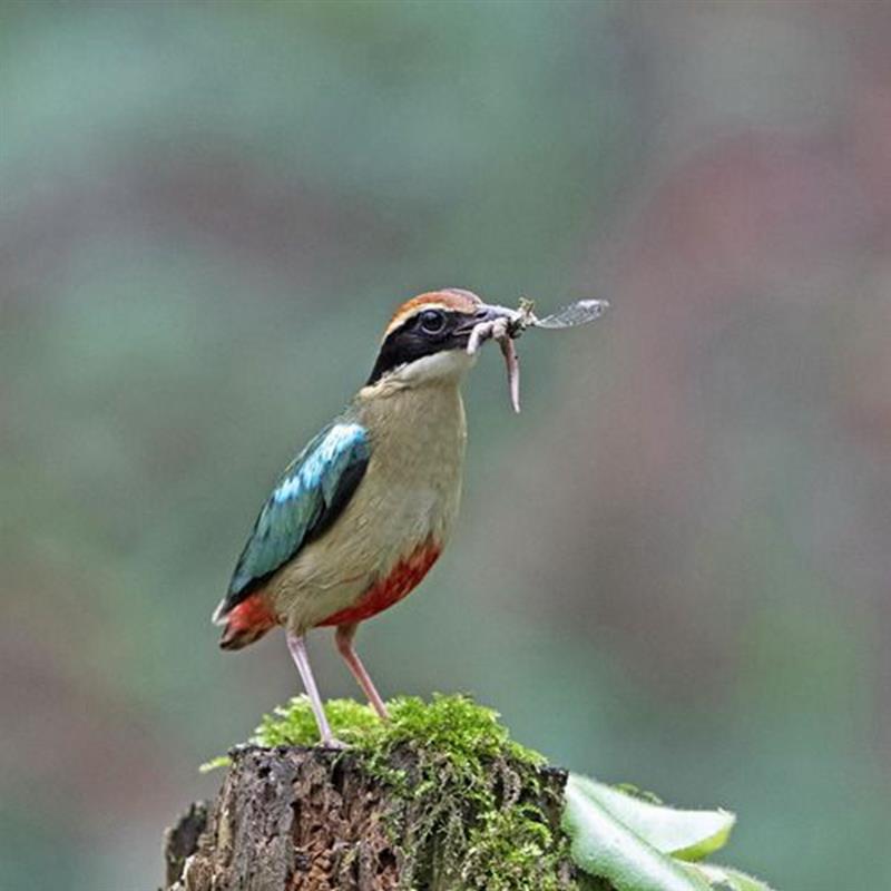 在河南省羅山縣靈山鎮(zhèn)的一處山坡上,一只仙八色鶇在樹林中覓食。新華社記者 梅永存 攝