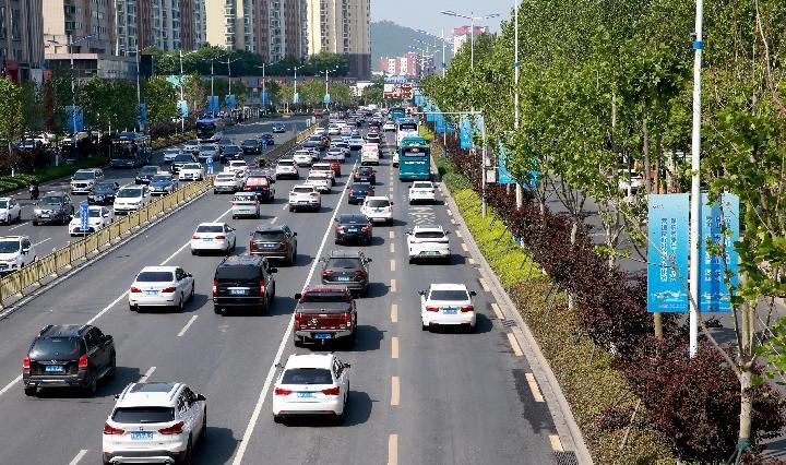 4月27日,山東省濟南市經(jīng)十路公交車道平峰期允許社會車輛通行。(新華社記者王陽攝)