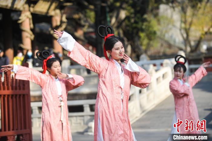 漢服愛好者正在表演漢代女子成人禮?!∥淇〗?攝