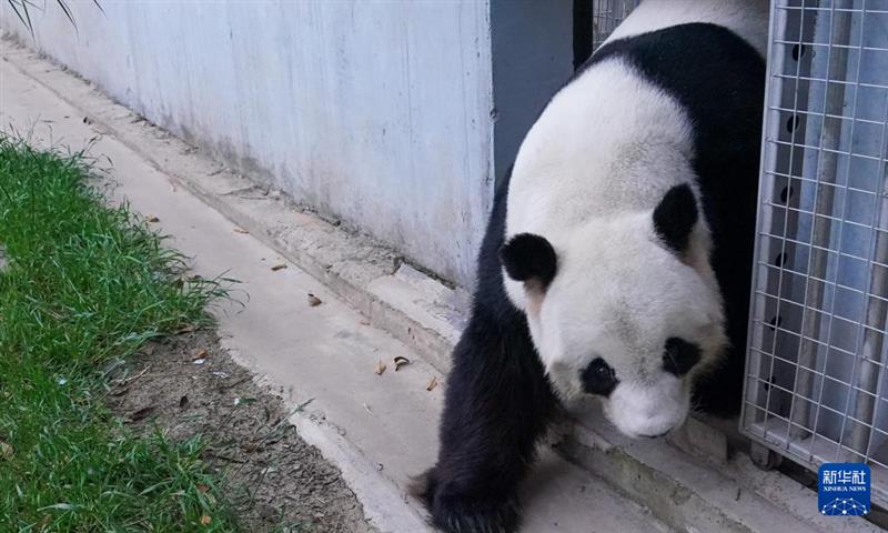 ??5月18日,在中國大熊貓保護(hù)研究中心雅安基地,大熊貓“鳳儀”進(jìn)入隔離圈舍。新華社發(fā)(李傳有 攝)