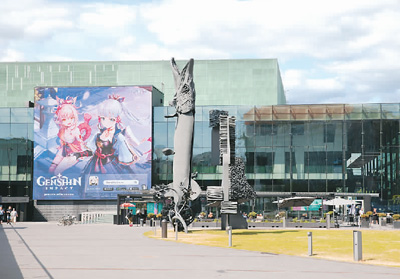 近日,在芬蘭赫爾辛基街頭,中國公司米哈游制作的游戲《原神》宣傳廣告海報占據(jù)醒目位置。