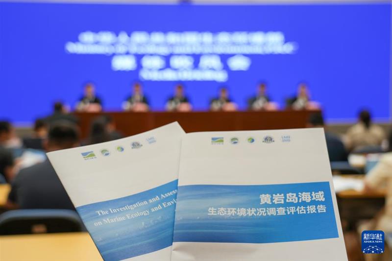 ??這是在北京的發(fā)布現(xiàn)場(chǎng)拍攝的《黃巖島海域生態(tài)環(huán)境狀況調(diào)查評(píng)估報(bào)告》中文版和英文版(7月10日攝)。新華社記者 張玉薇 攝