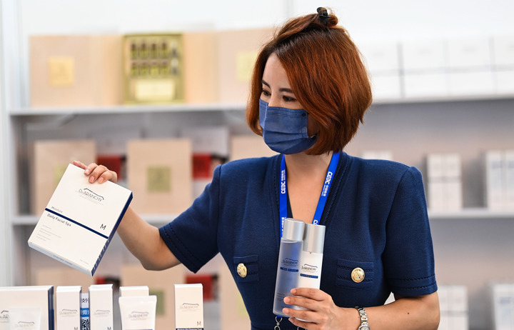 9月17日,第19屆中國—東盟博覽會進(jìn)入會期第二天。在本屆東博會特邀合作伙伴韓國國家館內(nèi),韓國護(hù)膚品品牌達(dá)朗喜大中華區(qū)總代表丁雪一邊忙著吆喝吸引觀眾,一邊忙著在網(wǎng)絡(luò)平臺上宣傳產(chǎn)品。