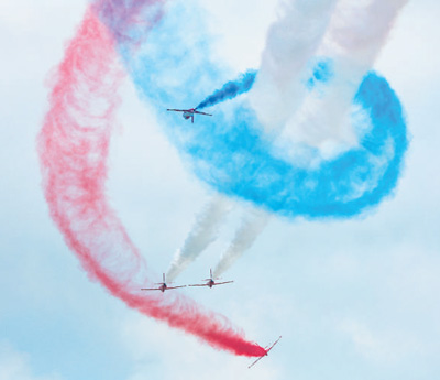 空軍航空大學(xué)“紅鷹”飛行表演隊(duì)進(jìn)行飛行表演。