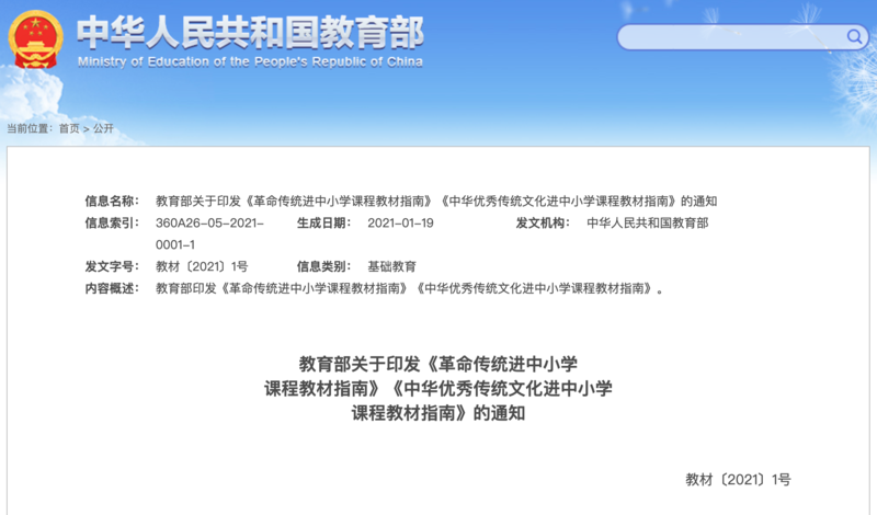 中國青年報客戶端北京2月5日電(中青報·中青網(wǎng)記者 樊未晨)記者今天從教育部獲悉,為進一步把中華民族優(yōu)秀文化基因和紅色基因植入青少年兒童心田,教育部印發(fā)了《中華優(yōu)秀傳統(tǒng)文化進中小學(xué)課程教材指南》和《革命傳統(tǒng)進中小學(xué)課程教材指南》(以下簡稱“兩個指南”),對中華優(yōu)秀傳統(tǒng)文化和革命傳統(tǒng)進中小學(xué)課程教材的基本原則、總體目標(biāo)、主要內(nèi)容、載體形式、學(xué)段和學(xué)科要求等,做了統(tǒng)籌設(shè)計和科學(xué)安排,強調(diào)素養(yǎng)導(dǎo)向、系統(tǒng)規(guī)劃和全科覆蓋?!皟蓚€指南”的印發(fā)為國家課程教材、地方課程教材和校本課程建設(shè)提供了政策依據(jù),也為學(xué)校教育教學(xué)活動提供了具體指導(dǎo)。