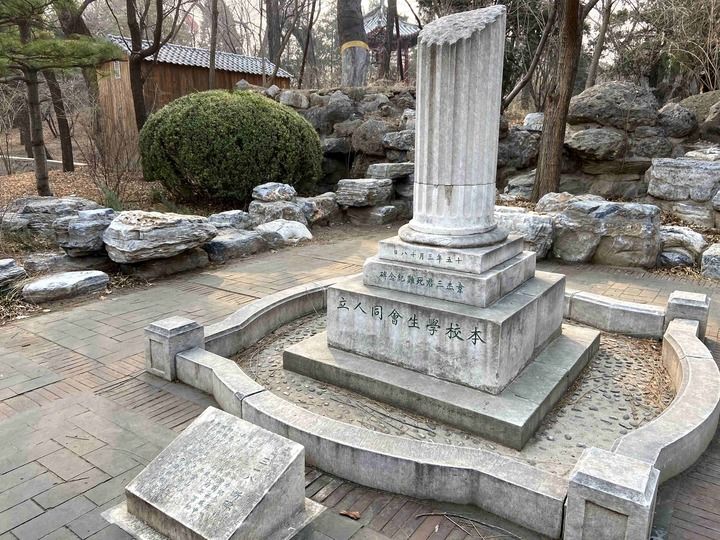 在清華,還有一座“三院遺址”紀(jì)念碑。這里曾是清華最早興建的建筑物之一的三院,在抗戰(zhàn)期間遭敵寇破壞。1926年,清華第一個(gè)中共黨支部在此誕生,支部成員有3人。