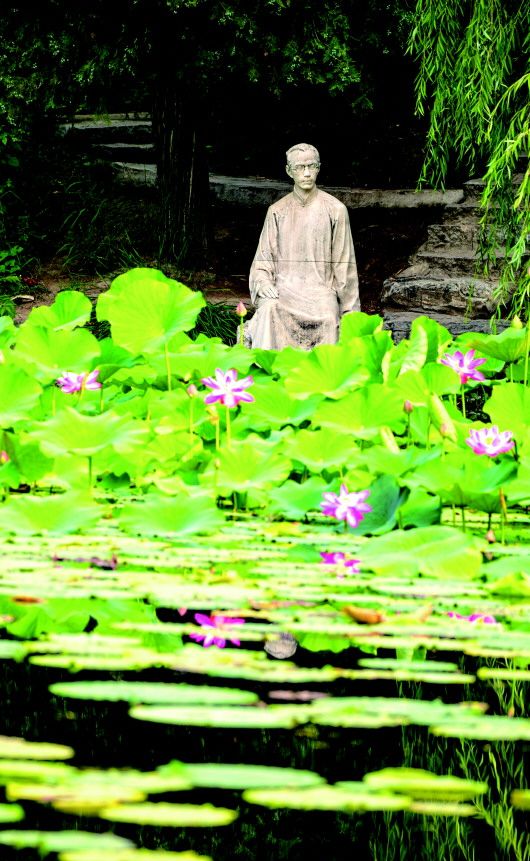在清華著名景觀“水木清華”,聞一多好友朱自清的雕像也靜坐于湖邊,山林掩映,湖畔春花綻放。這里原為咸豐皇帝舊居近春園的核心地帶,每年都有很多人慕名而來(lái),尋找朱自清筆下“荷塘月色”的勝景。