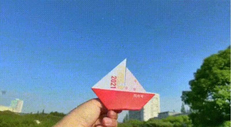 打開寶盒的封面是一枚同濟(jì)大學(xué)的校標(biāo),也可以用作冰箱貼,取下校標(biāo)后還藏著一份“造船指南”。根據(jù)“指南”的指示可將紙折成一艘船,“同舟號”“共濟(jì)號”“夢想號”意為托起夢想的風(fēng)帆。