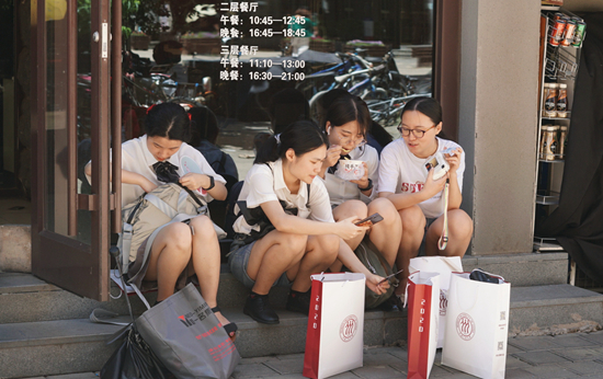 7月4日,中國人民大學(xué)校內(nèi),當(dāng)天午后的氣溫高達(dá)36℃,因沒有自己的宿舍可供午休,4名2020屆畢業(yè)生坐在食堂門口的陰涼處休息,旁邊放著學(xué)校發(fā)放給畢業(yè)生的紙袋,里面裝有紀(jì)念貼紙、餐券等物品。