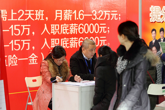 2014年12月18日,2015年北京地區(qū)畢業(yè)研究生專(zhuān)場(chǎng)供需見(jiàn)面、雙向選擇招聘會(huì)上,求職者在教師崗位招聘展臺(tái)咨詢。(資料圖片)視覺(jué)中國(guó)供圖