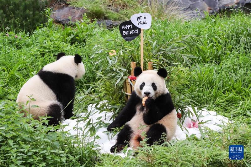 新華社柏林8月31日電(記者張毅榮 張遠)旅德大熊貓“夢夢”和“嬌慶”的雙胞胎幼崽“夢想”和“夢圓”8月31日迎來兩周歲生日,柏林動物園為它們舉辦了慶?;顒?。