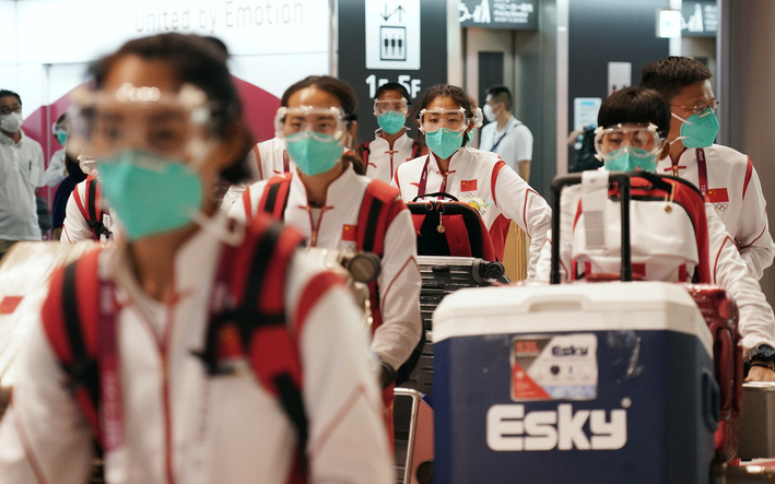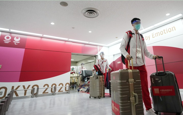 “帥”旗手就位、眾將輕松“過關” 中國代表團部分成員抵達東京