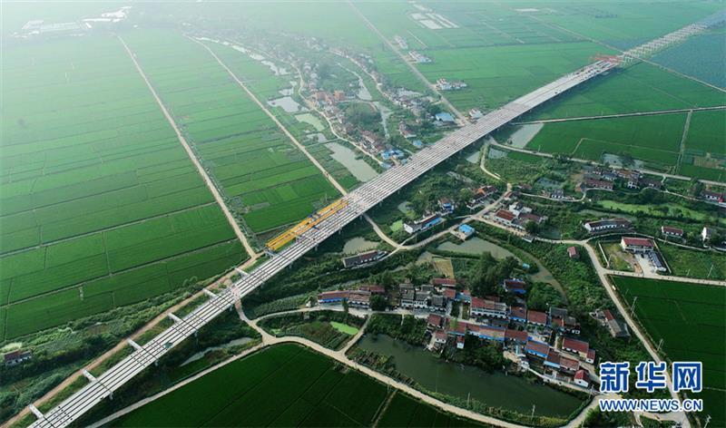徽州大道南延工程是合肥市區(qū)至廬江縣之間的快速通道,全長約48公里,為雙向六車道一級公路。目前,徽州大道南延項目重要性節(jié)點工程正按序時進度穩(wěn)步推進。新華網(wǎng)發(fā)(王閩 攝)