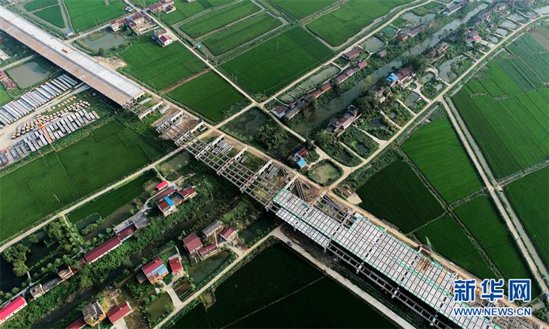 8月28日,航拍徽州大道南延工程廬江縣石頭鎮(zhèn)境內(nèi)施工現(xiàn)場。