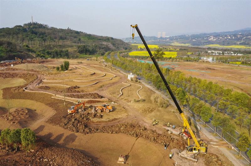 8月6日,工人在重慶廣陽(yáng)島生態(tài)修復(fù)二期項(xiàng)目作業(yè)。新華社記者 王全超 攝