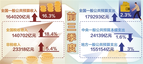 財政部最新數(shù)據(jù)顯示,前三季度,全國一般公共預(yù)算收入16.4萬億元,同比增長16.3%;全國一般公共預(yù)算支出17.93萬億元,同比增長2.3%??傮w來看,收入延續(xù)穩(wěn)定增長,重點領(lǐng)域支出給力,積極財政政策提質(zhì)增效,折射出我國經(jīng)濟持續(xù)穩(wěn)定恢復(fù)、長期向好。