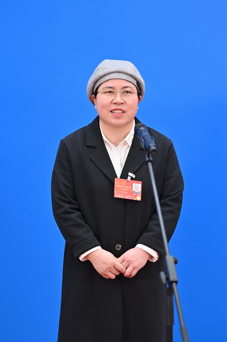 全國人大代表馬慧娟通過網(wǎng)絡(luò)視頻方式接受采訪。