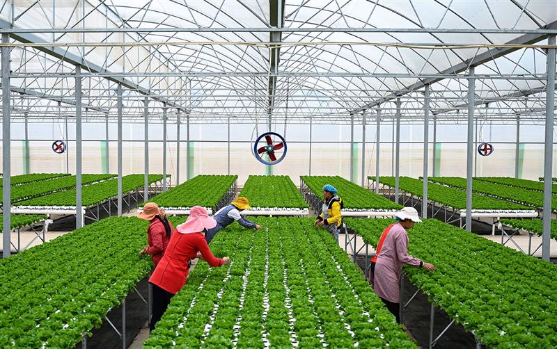4月27日,搬遷群眾在云南會(huì)澤縣道成公司蔬菜大棚里勞作。新華社記者 王冠森 攝