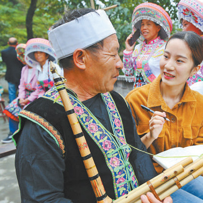 普法志愿者在重慶萬(wàn)盛經(jīng)開(kāi)區(qū)田壩村為苗族群眾講解法律知識(shí)。 |