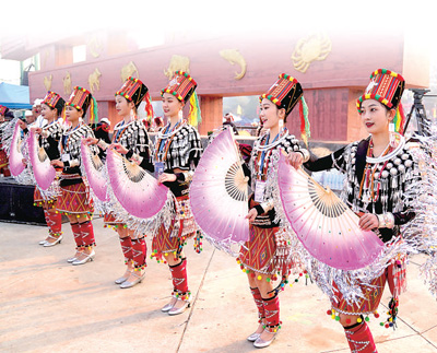 云南德宏傣族景頗族自治州隴川縣,當(dāng)?shù)厝罕娖鹞钁c祝節(jié)日。