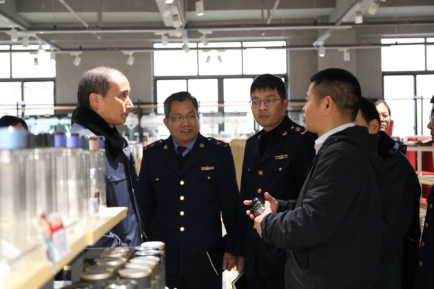 賈國鋒局長一行對我司智慧倉儲、生產(chǎn)、物流、展廳等一一參觀視察,對企業(yè)的生產(chǎn)、銷售、產(chǎn)品渠道等多方面情況進(jìn)行一一詢問,在得知貨郎先生自主品牌產(chǎn)品多達(dá)20000多款后,對于市場監(jiān)督部門更好地服務(wù)像貨郎先生這樣的企業(yè),幫助企業(yè)在未來的道路上,能更好更快地發(fā)展。政府將通過現(xiàn)有的技術(shù),幫助像貨郎先生這樣具有全國范圍品牌影響力,又有自主設(shè)計、生產(chǎn)能力,對行業(yè)上下游供應(yīng)鏈有整合能力的企業(yè)快速發(fā)展;并定期對貨郎先生上市的每個商品,進(jìn)行商品目錄收入,在全國范圍內(nèi)對貨郎先生的商品、標(biāo)簽、設(shè)計的等侵權(quán)問題,從政府層面進(jìn)行追蹤,對于侵權(quán)問題,依法采取行政手段進(jìn)行嚴(yán)格干預(yù)和管理;同時鼓勵貨郎先生,通過自身系統(tǒng)積極檢舉侵權(quán)行為,通過法律手段維護(hù)自己的合法權(quán)益。