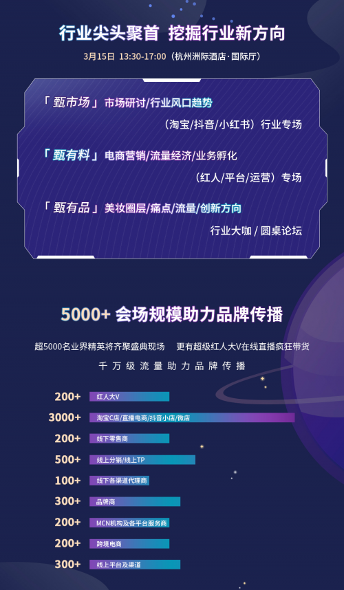 展覽涵蓋了行業(yè)會議分享、紅人集會、會議品牌曝光、線下云展會巡展、新品發(fā)布會、晚宴頒獎。其中“飛躍甄程,蓄勢共進(jìn)”星級資源品牌合作洽談會,作為獨家板塊匯聚社群機構(gòu)、電商平臺、直播機構(gòu)、MCN機構(gòu)、小程序、公眾號,實現(xiàn)了渠道資源無縫對接,品牌需求一步到位。