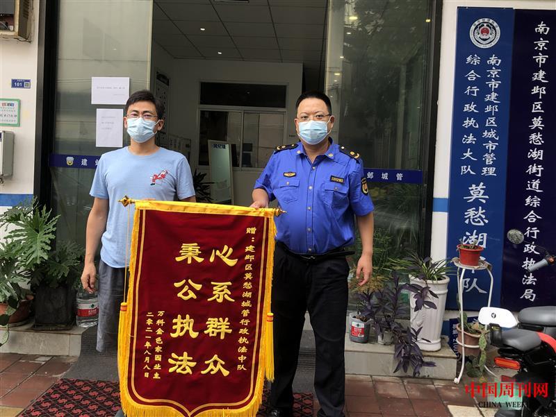 為民辦實事:建鄴城管秉公執(zhí)法 居民送錦旗致謝