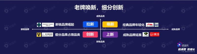 品牌成熟、品類成熟的例如李寧通過(guò)年輕化轉(zhuǎn)型實(shí)現(xiàn)喚新;