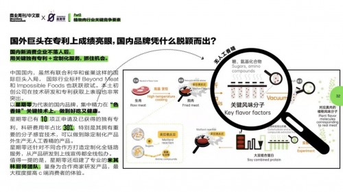 在白皮書中,星期零提到歐美仍然占據(jù)植物肉專利數(shù)量上的領先,本土植物肉新銳品牌較難突破重圍。但正因為對于本土市場的了解,星期零選擇主攻關鍵技術,輔以定制化服務。關鍵技術就是好吃,也就是中餐里最看重的「色香味」。并且團隊中還有米其林廚師,為每次合作調(diào)配定制化的口味。