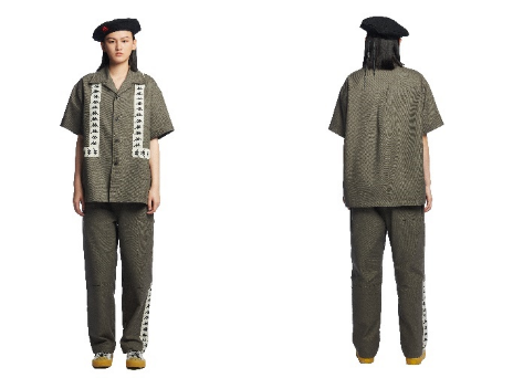 Banda串標(biāo)形變休閑套裝中,Omini背靠背logo左右翻轉(zhuǎn),并以L 形鏡面形式分布兩側(cè);褲裝上的Banda串標(biāo)也一反貫穿始終的常態(tài),在膝下戛然而止,極具巧思;兼具機(jī)能服飾簡(jiǎn)約百搭、與時(shí)尚單品高階質(zhì)感的版型設(shè)計(jì),也為潮男潮女拓展出多元穿搭可能。