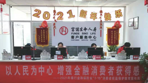 以人民為中心,增強(qiáng)金融消費(fèi)者獲得感,是今年3·15消費(fèi)者權(quán)益保護(hù)宣傳周的主題。富德生命人壽江蘇分公司連云港中支及下轄營服,均張貼統(tǒng)一定制的橫幅和展架,在柜面擺放消費(fèi)者權(quán)益保護(hù)手冊、反洗錢、非法集資、網(wǎng)絡(luò)詐騙等宣傳折頁,向來往客戶宣傳消費(fèi)者權(quán)益等知識(shí)。