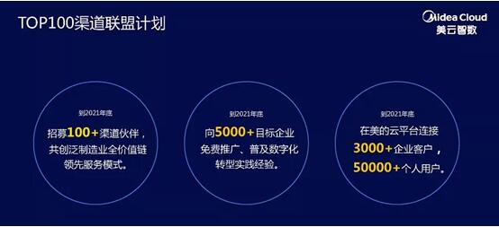 為了更好地激勵(lì)渠道,基于“共融共生”的多贏機(jī)制,美云智數(shù)圍繞“產(chǎn)品代理模式、商業(yè)伙伴模式和商機(jī)伙伴模式”展開三個(gè)維度的深度合作,計(jì)劃到2021年底招募100+渠道伙伴,共創(chuàng)泛制造業(yè)全價(jià)值鏈領(lǐng)先服務(wù)模式,并向5000+企業(yè)免費(fèi)普及和推廣數(shù)字化轉(zhuǎn)型經(jīng)驗(yàn),在美的云平臺(tái)連接3000+企業(yè)客戶、50000+個(gè)人用戶。