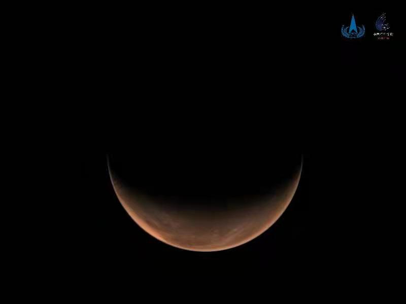 天問(wèn)一號(hào)探測(cè)器拍攝的北半球火星側(cè)身影像。國(guó)家航天局供圖