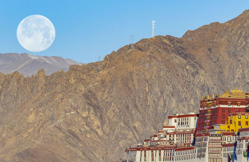 這是2020年3月10日在拉薩市布達(dá)拉宮附近拍攝到的年度第二大滿月。新華社發(fā)