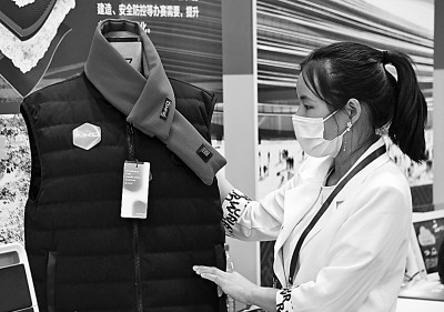 石墨烯發(fā)熱羽絨馬甲和石墨烯發(fā)熱圍巾。新華社發(fā)