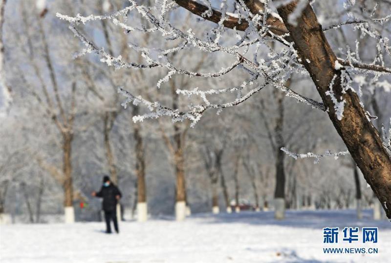 當(dāng)日,遼寧省沈陽市出現(xiàn)霧凇景觀,玉樹瓊花,美不勝收。