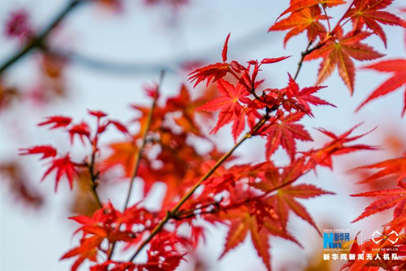 俯瞰植物園內(nèi),漫山遍野的紅楓呈現(xiàn)一派紅黃相間的海洋,像打翻的調(diào)色盤(pán)。新華網(wǎng)發(fā)(秦蒸 攝)