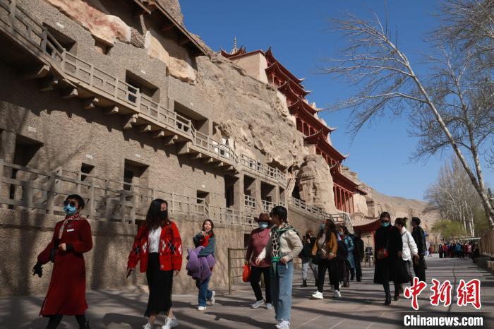 圖為4月中旬,游客在敦煌莫高窟參觀游玩。 張曉亮 攝