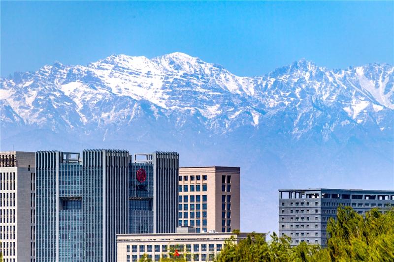 人民網銀川4月28日電 (閻夢婕)在經歷了一天的沙塵、大風天氣后,寧夏新十景之一“賀蘭晴雪”又一次出現。藍天下,賀蘭山山頂的皚皚積雪與銀川市內的碧水春光相映成趣,美色宜人。