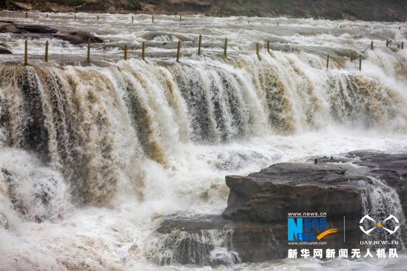 無人機(jī)視角下的壺口瀑布。新華網(wǎng) 發(fā)(史港澤 攝)