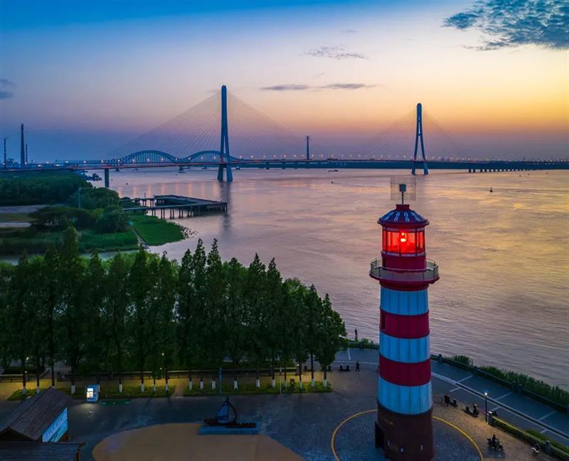 除了網(wǎng)紅燈塔,這里還能看到長(zhǎng)江三橋。靜靜的趴在欄桿上,看太陽的余暉灑滿天際,再看它慢慢落下,是一件特別幸福的事。(李曉村 攝)