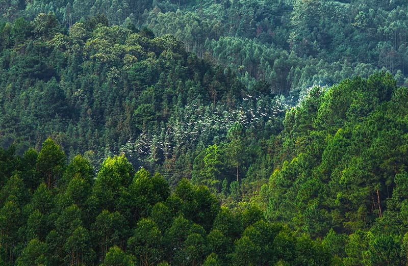 早晨一群白鷺在山林間飛舞。徐麗珠攝