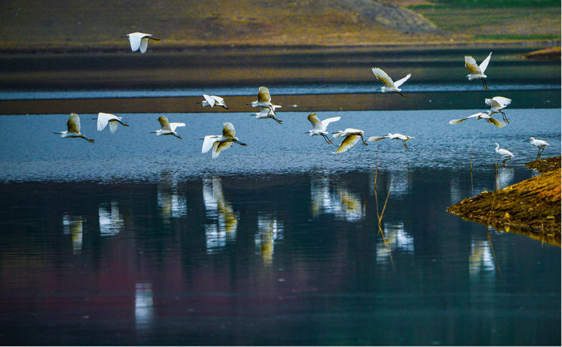 人民網(wǎng)河池6月9日電 (沈泉池)近年來,廣西壯族自治區(qū)河池市宜州區(qū)十分注重生態(tài)環(huán)境的保護工作,因此,當?shù)氐纳搅?、水庫或在鄉(xiāng)村的濕地、田野,都是鳥兒們棲息的樂園與天堂。近日,在宜州區(qū)六坡水庫、洛西水庫等地,成群的白鷺在這里悠閑地覓食,快樂飛翔。