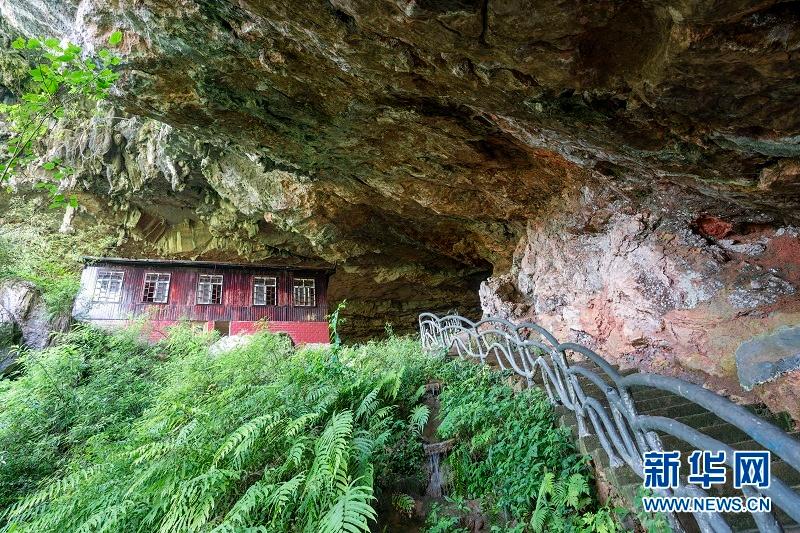 圖為湖北恩施州建始縣高坪鎮(zhèn)地心谷岸邊溶洞里的古民居。新華網(wǎng)發(fā) 文林?jǐn)z