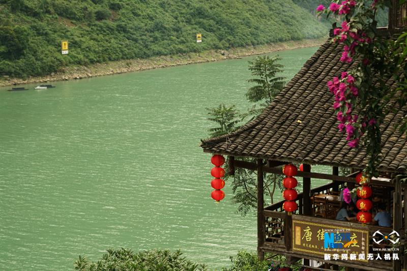 由于水陸交通便利,龔灘自古便是川渝黔湘鄂的客貨中轉(zhuǎn)站。臨江而建的吊腳樓群,還留存著古鎮(zhèn)曾經(jīng)繁華的印記。新華網(wǎng) 韓夢(mèng)霖 攝