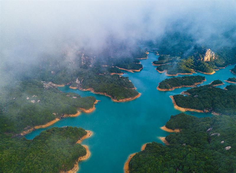 福建漳州烏山山脈,橫跨云霄縣、詔安縣、常山華僑經(jīng)濟開發(fā)區(qū)等縣區(qū)。位于常山華僑經(jīng)濟開發(fā)區(qū)境內(nèi)的烏山天池屬于烏山山脈的核心區(qū)。在這海拔700多米的高山上,一池面積約800畝的湖水被群山所環(huán)繞,山巍峨雄偉,水清秀柔美,山水交融,宛若一串綠色翡翠鑲嵌于群山之中,美如畫卷。