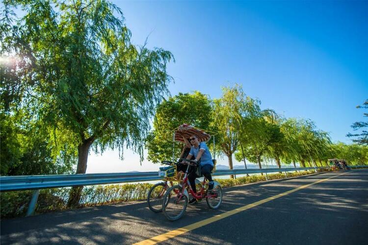 這里的一切都很慢,在島上,你可以欣賞到如詩如畫的湖光山色,也可泛舟湖中穿梭在蘆葦蕩里,亦可租一輛電動車或自行車來場環(huán)島游,或者徜徉在花海中撒歡嬉戲,享受舒適愜意的美好時光。